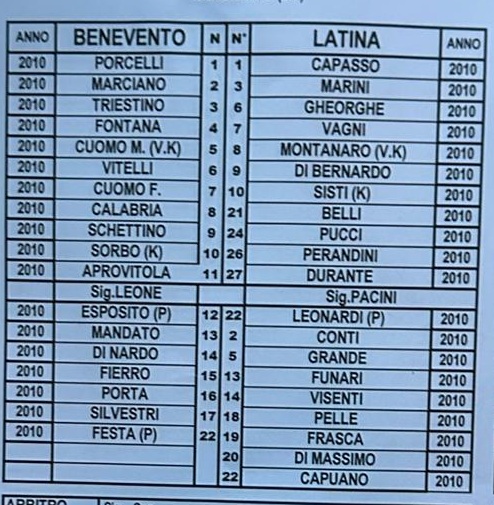 Finale 2-3 per il Latina, di seguito la DISTINTA della sfida