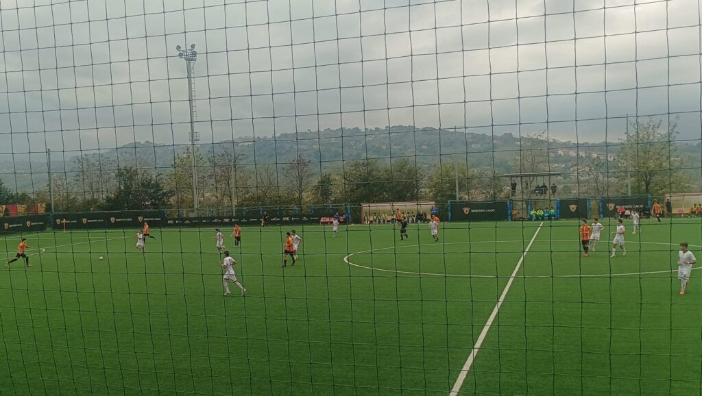 Al 25′ la Ternana U17 di mister Fazio pareggia i conti: calcio d’angolo dalla sinistra, palla in area ed il n. 8 Glandarelli di testa la mette in fondo al sacco.