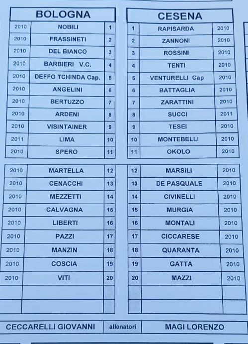 Clicca qui per la gara Under 16 Bologna-Cesena