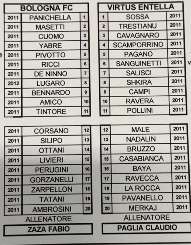 Bologna – Nello scorso week end l’Under 17 del Bologna ha perso sul campo del Torino, le due squadre U15 e 16 hanno sconfitto la V.Entella.