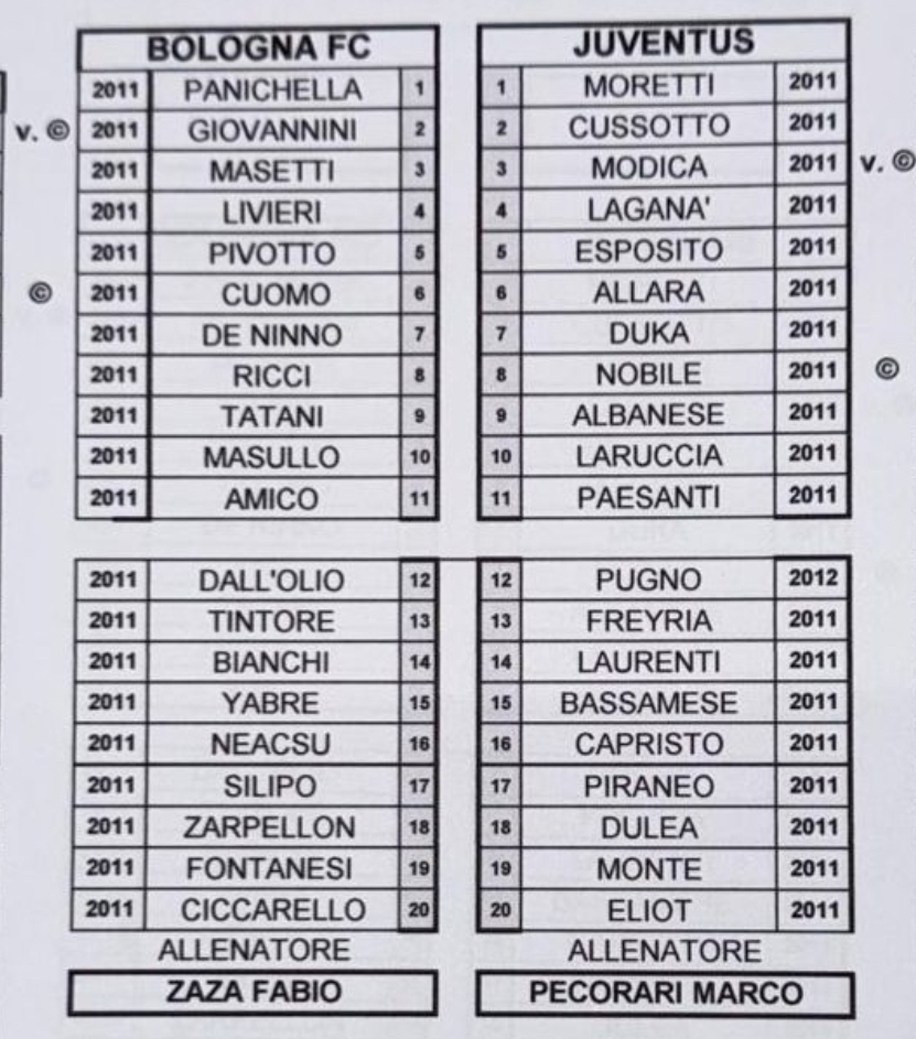Nella giornata di sabato 14 marzo si sono giocate in Emilia le due gare Bologna Juventus U15 e U16 A-B. Ecco le distinte.