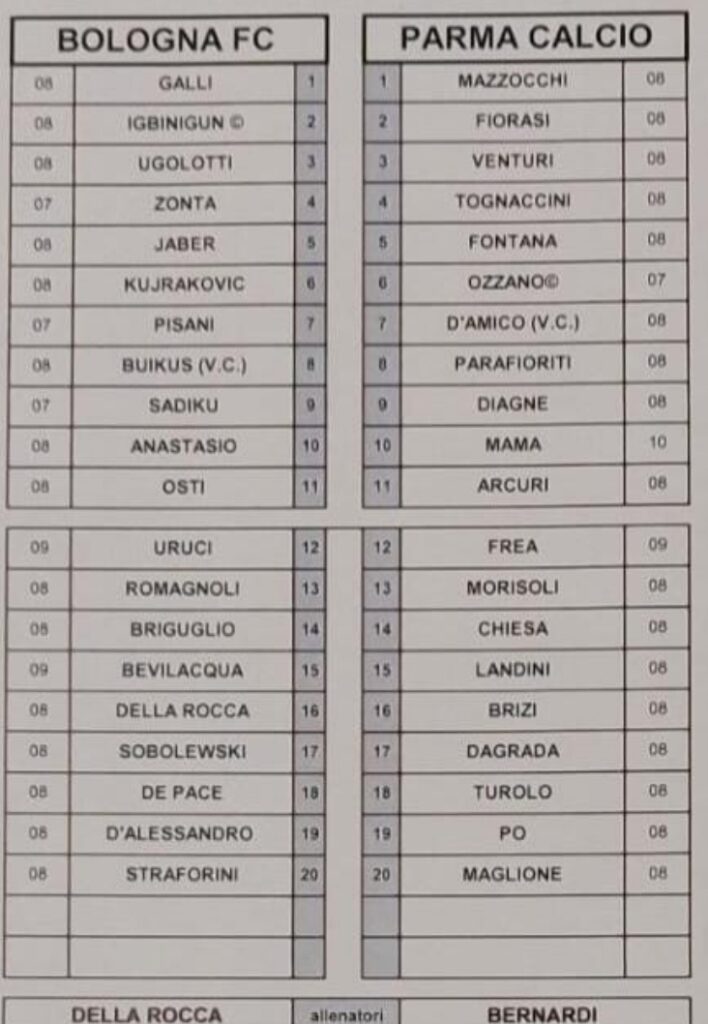 Bologna-Parma (U18) – Distinta, risultato e marcatori del match che si è giocato nella giornata di domenica 14 dicembre in Emilia.