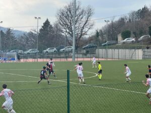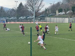 Al 4′ i giallorossi passano in vantaggio: Martello (classe 2010) effettua un passaggio per Pirozzi, tira colpendo il palo, sulla ribattuta lo stesso Pirozzi la mette dentro.