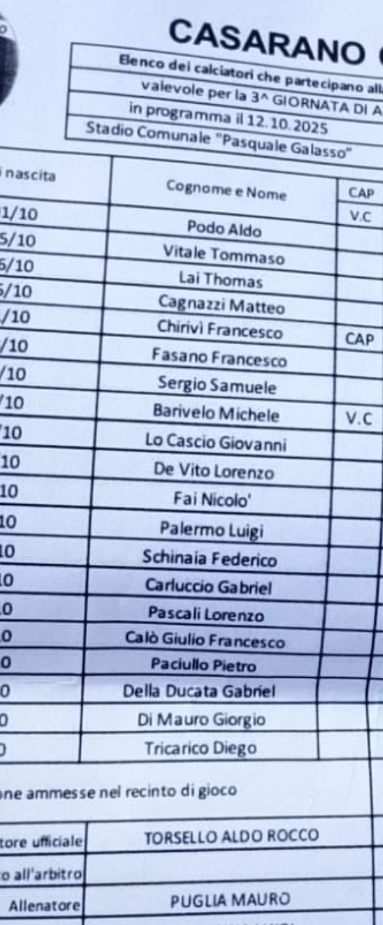 Casertana-Casarano si è giocata domenica 12 ottobre al campo “Galasso” di Cancello ed Arnone (Ce). Ecco la distinta del match U16 Serie C
