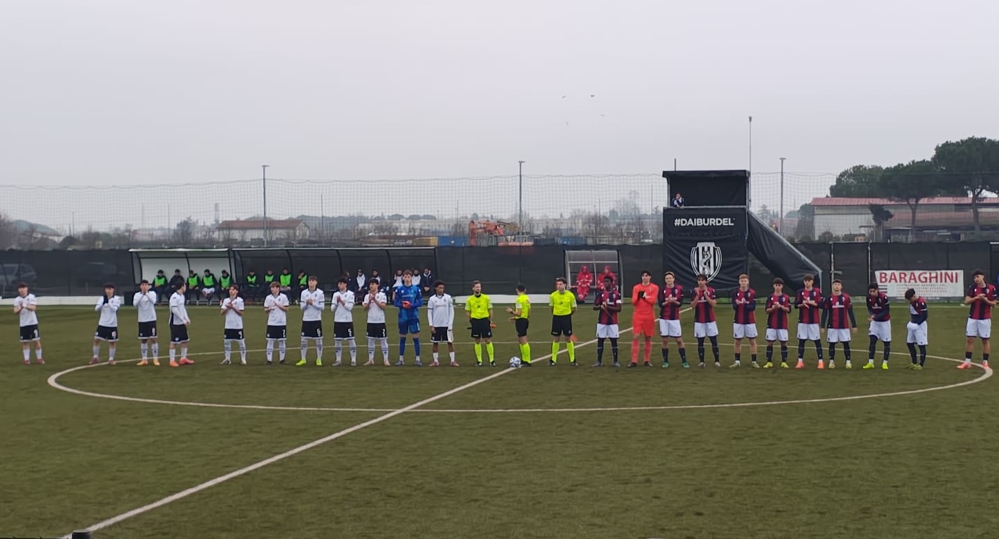 Succede tutto nel primo tempo col Bologna in gol al 12′ con il n.4 classe 2009 Baldini il cui tiro dal limite termina sul palo e poi la sfera entra alla sinistra del portiere Dorigo dei romagnoli.
