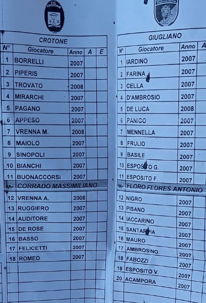 Nell’anticipo del Campionato U17 Serie C (Girone D) da registrare c’è la vittoria, ottenuta a circa 10 minuti dalla fine, in trasferta dal Giugliano Under 17 del tecnico Floro Flores ai danni dei padroni di casa del Crotone Under 17 di mister Massimiliano Corrado.
