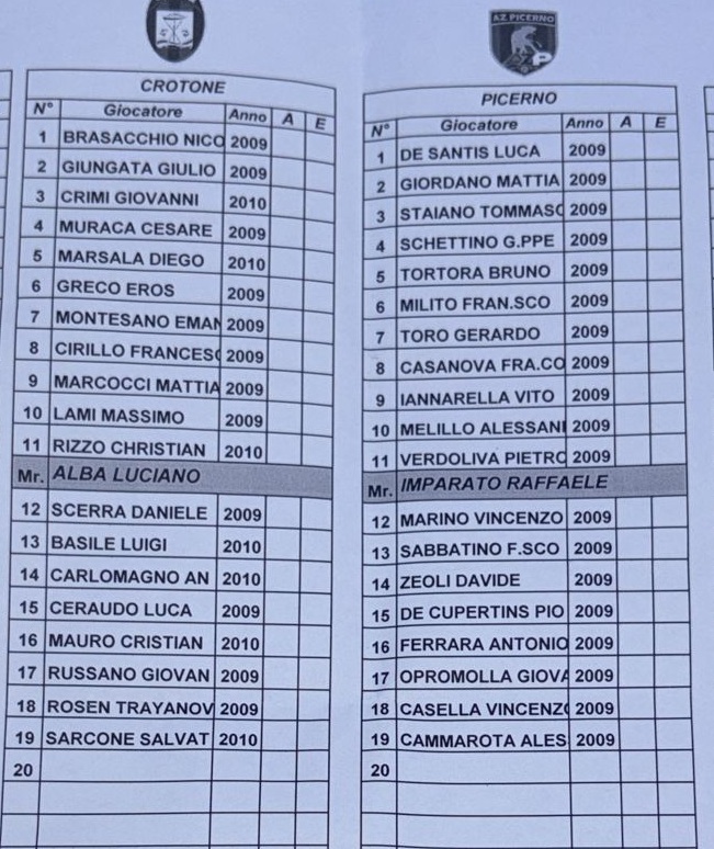 CROTONE – AZ PICERNO  Under 17 Serie C