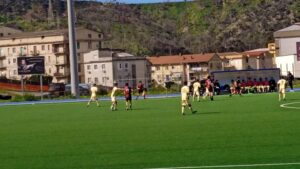 Ma i campani non mollano e segnano anche la terza rete con il centrocampista Canfora che si porta la palla sul sinistro in area avversaria, supera un avversario e segna! Il primo tempo si chiude 0-3 con gli ospiti davvero scatenati.