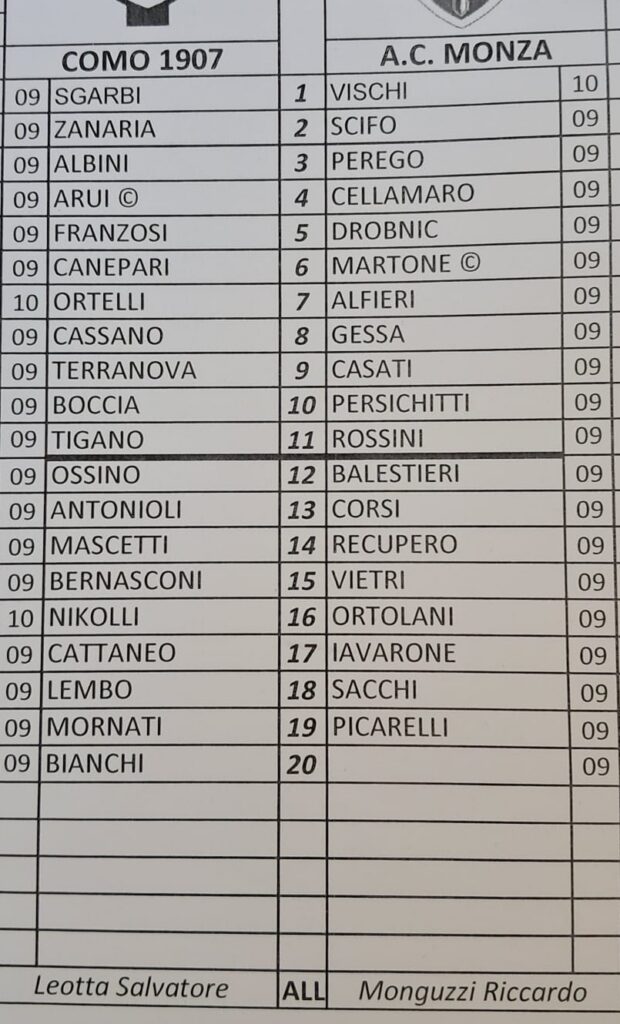Distinta – Di seguito gli schieramenti iniziali del match Como-Monza che si è disputato sabato 18 ottobre in Lombardia.
