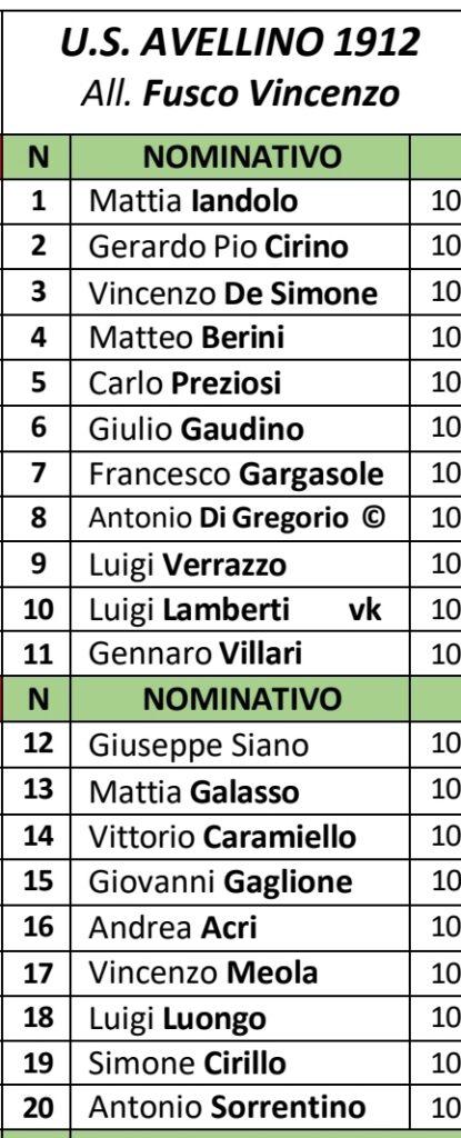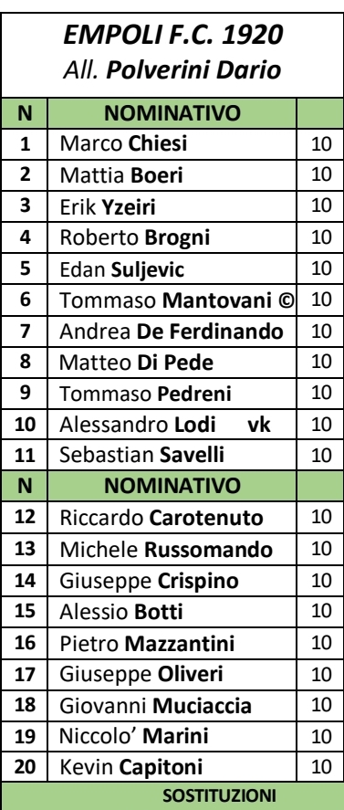 Empoli-Avellino (U16): distinta del match. La gara si è giocata in Toscana nella giornata domenica 14 dicembre.