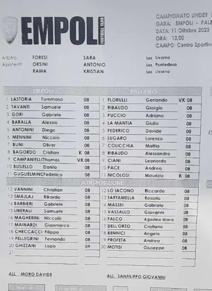 Nel frattempo è terminata Empoli Palermo valida per il recupero dell’Under 15 che si è giocata sempre stamattina alle 11:00.
