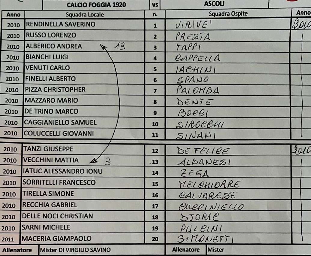 Foggia e Ascoli si sono affrontate domenica 15 settembre in Puglia nei due match validi per le categ. Under 15 e Under 17 Serie C.