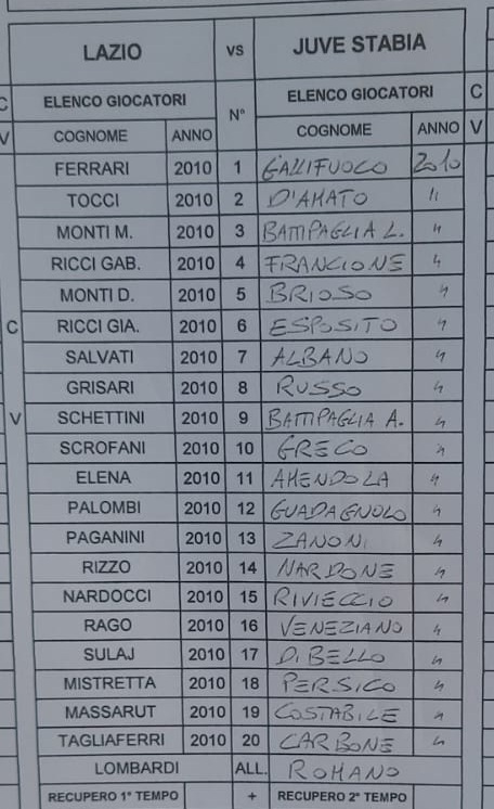 Nello scorso week end, al centro sportivo la “Borghesiana”, si sono giocate le due gare Lazio-Juve Stabia (categorie Under 15/Under 16 A-B).