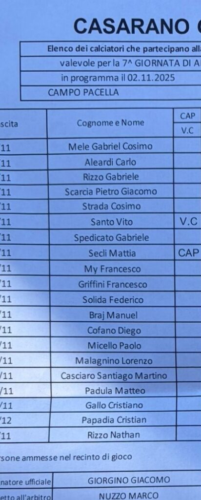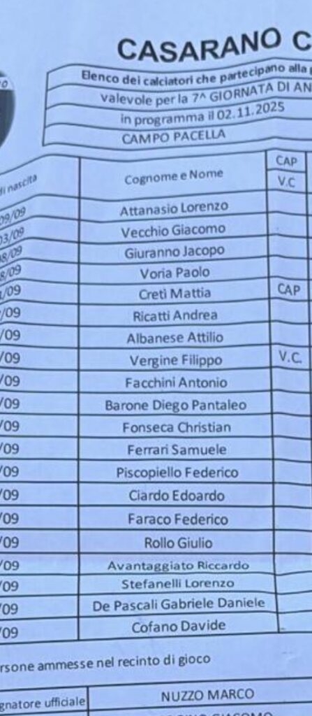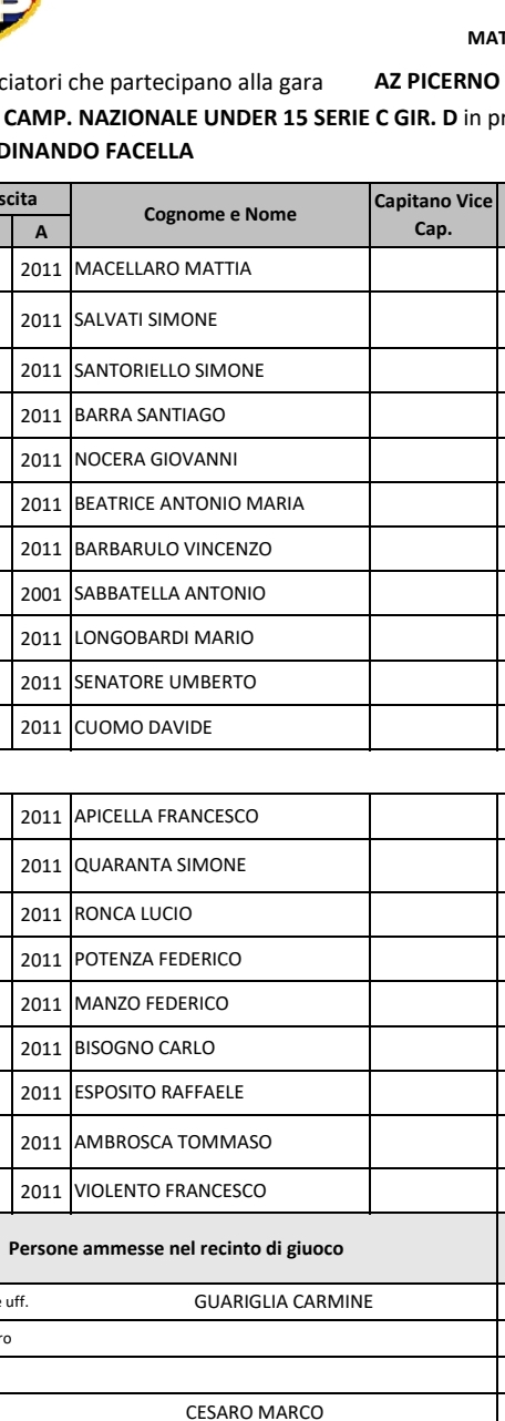 Picerno e Casarano si sono sfidate nello scorso week end due volte in Basilicata. Ecco le distinte dei 2 match.