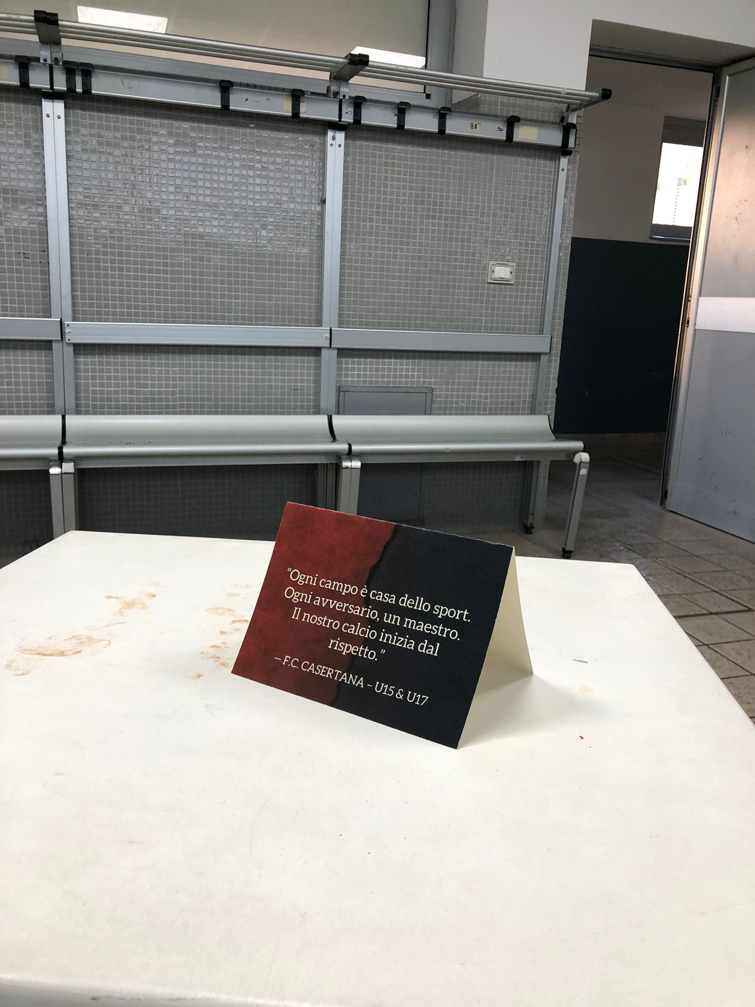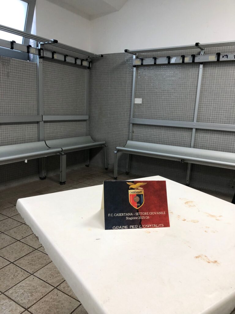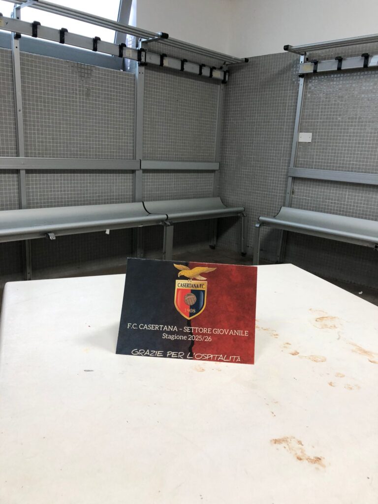 Di seguito alcuni scatti che ritraggono la targa stessa lasciata negli spogliatoi in uso alla Casertana fino a qualche ora fa.