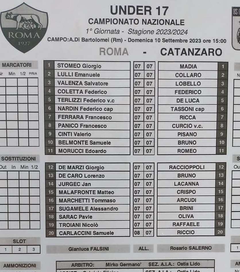 Roma e Catanzaro sono scese in campo domenica 10 settembre per la prima giornata di Campionato (Under 17 A-B – Girone C -)