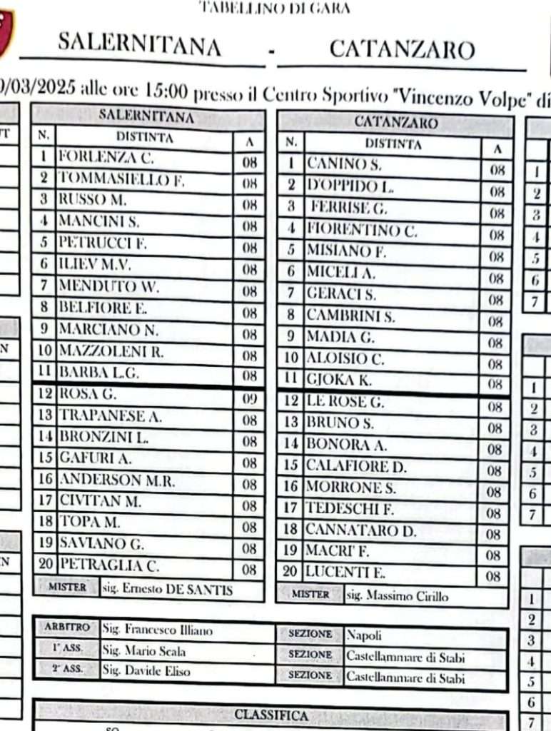 La Salernitana Under 17 del tecnico De Santis pareggia 2-2 in casa contro il Catanzaro del tecnico Cirillo.