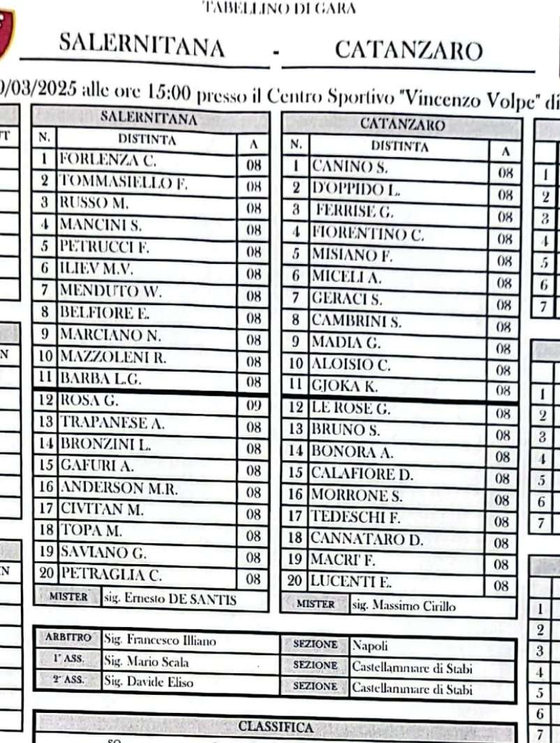 La Salernitana Under 17 del tecnico De Santis pareggia 2-2 in casa contro il Catanzaro del tecnico Cirillo.