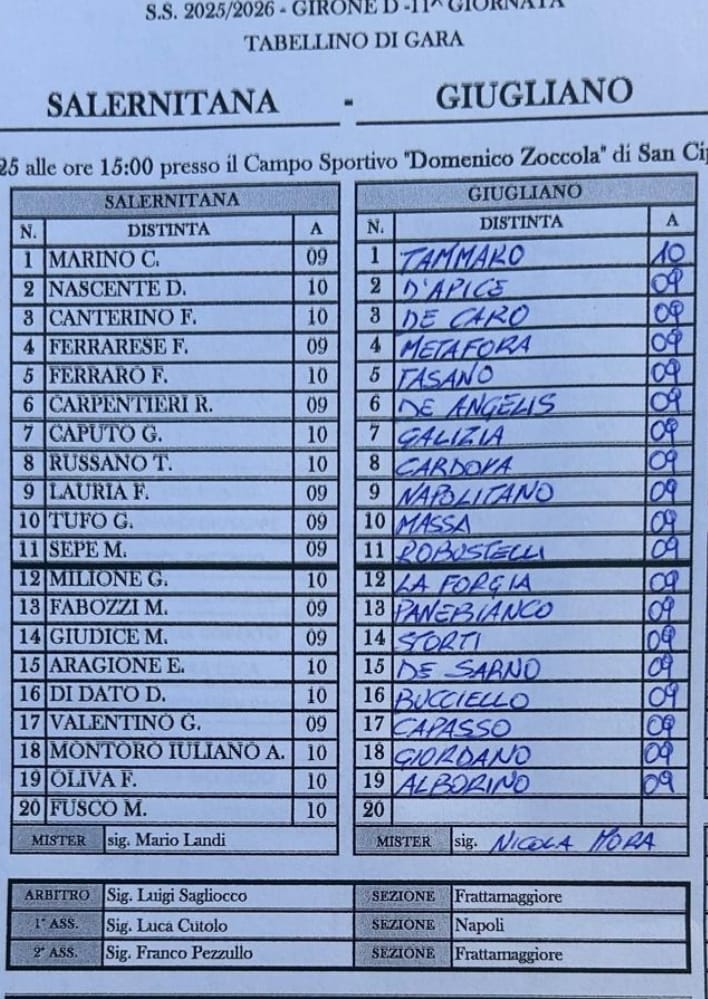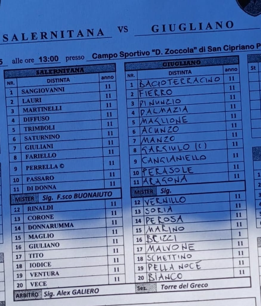 Salernitana e Giugliano si sono sfidate 2 volte nella giornata di domenica 7 dicembre. Ecco le distinte dei due derby campani U15 e U17.