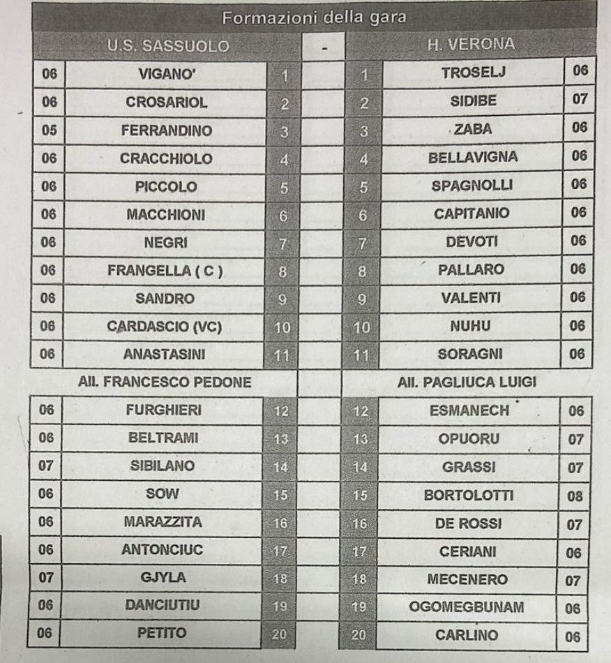 Tre punti ai neroverdi che si portano ora in classifica a 18, l’Hellas Verona di mister Pagliuca resta a 16, ma entrambe restano parecchi punti lontane dalla zona play off.