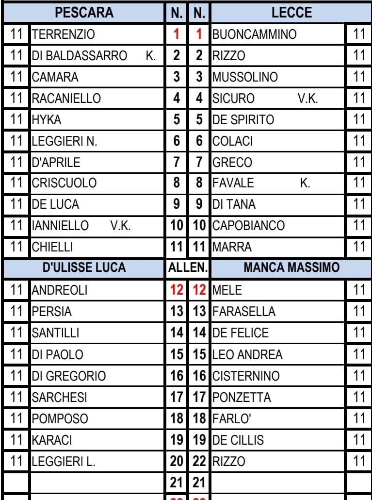 UNDER 15 A-B – Distinte di Pescara-Lecce e Catanzaro-Avellino. Le due gare si sono giocate domenica 30 novembre.
