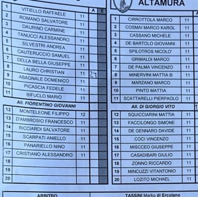 Under 15 (Serie C): di seguito le distinte dei match Monopoli-Salernitana e Sorrento-Altamura che si sono giocati domenica 14 dicembre.