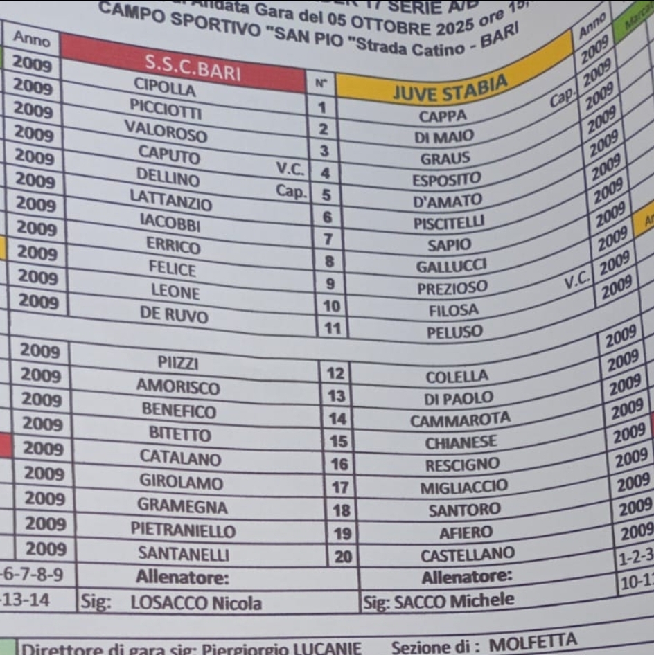 Under 17 A-B – Nello scorso week end si sono giocate le gare Padova-Venezia, Frosinone-Avellino, Bari-Juve Stabia e Pescara-Lazio.