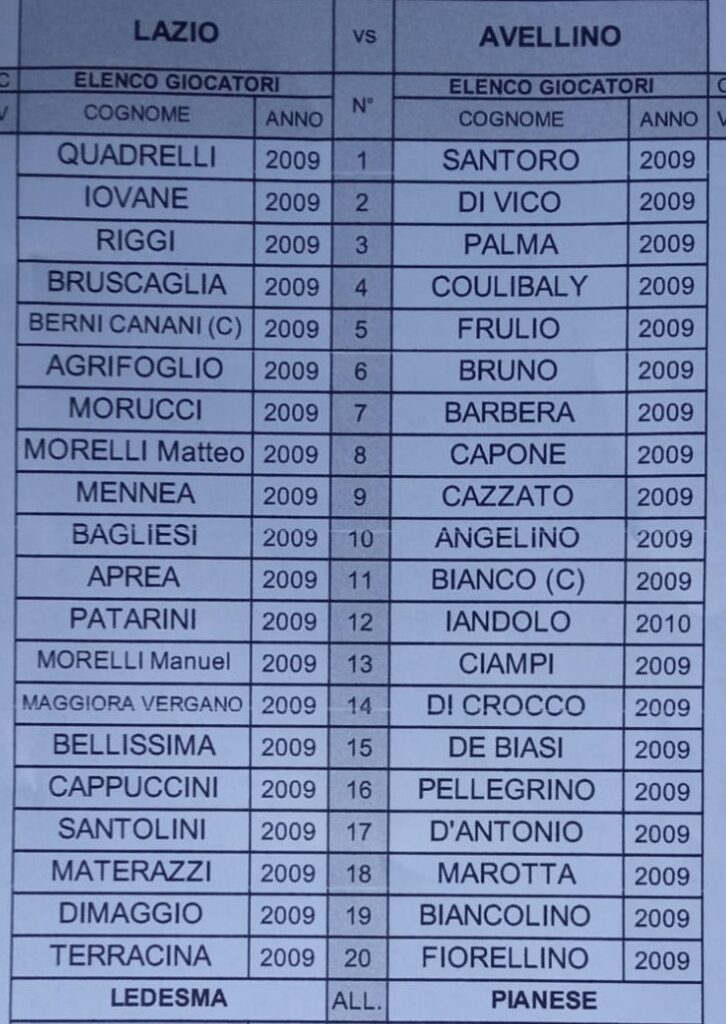 Under 17 A-B, distinte di Lazio-Avellino/Napoli-Bari. Le due gare si sono giocate domenica 16 novembre (Campionato U17 A-B, Girone C).
