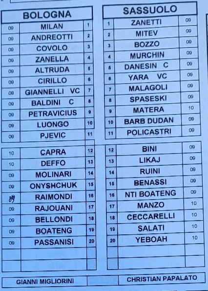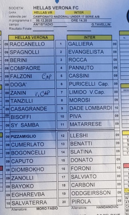 UNDER 17 – Le distinte di Bologna-Sassuolo e Verona-Inter. Le due gare si sono giocate in posticipo lunedì 8 dicembre.