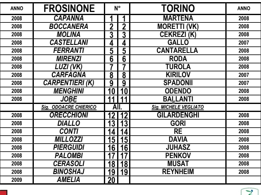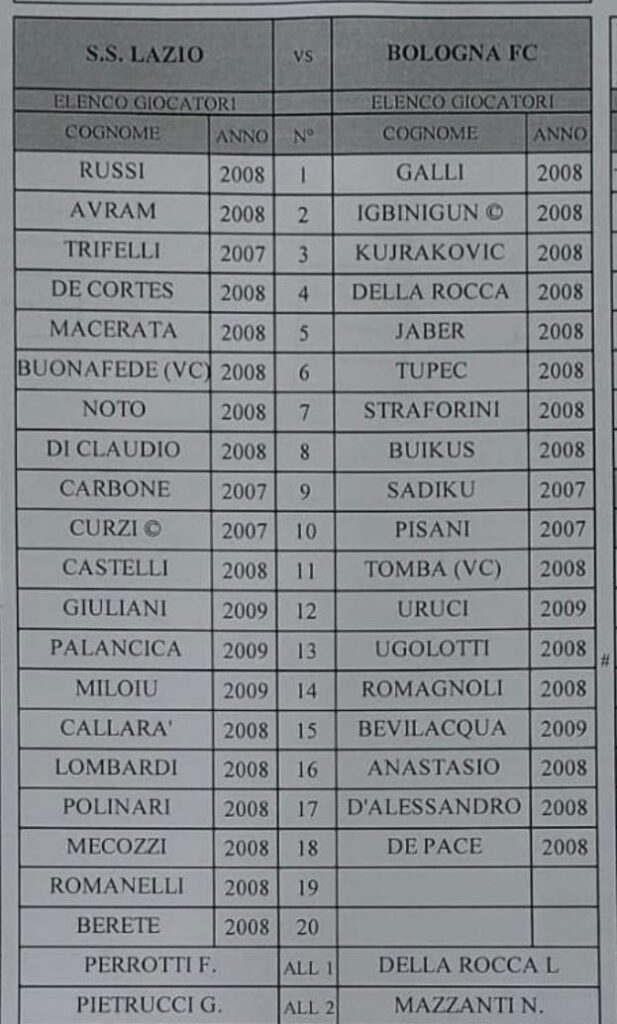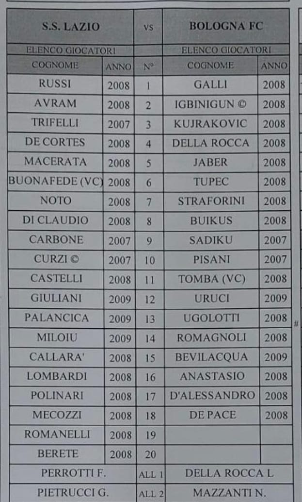 Under 18 A-B – Giovanili, di seguito le distinte di tre gare: Cremonese-Monza, Frosinone-Torino e Lazio-Bologna.