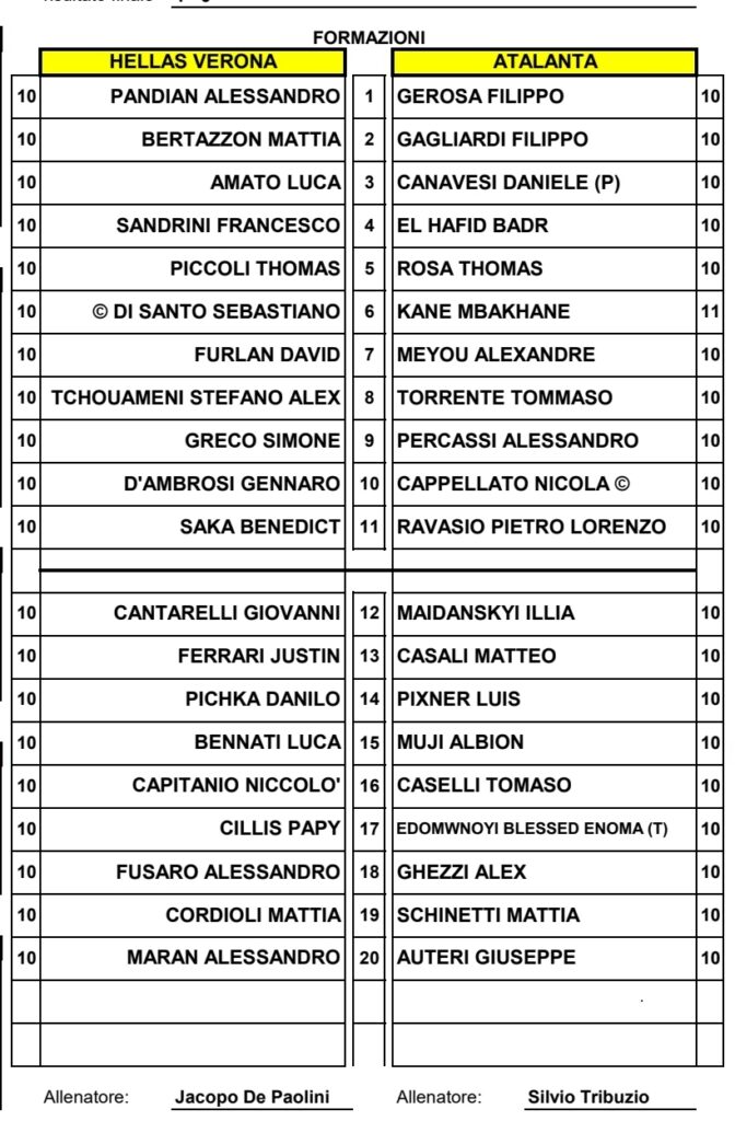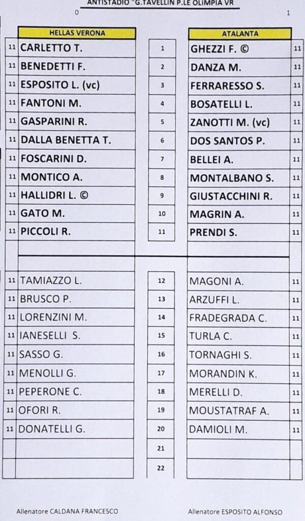 VERONA – Le distinte delle giovanili (U17-16-15). Di seguito le formazioni ufficiali delle squadre Under del club scaligero.