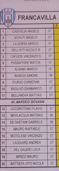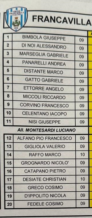 VIRTUS FRANCAVILLA: le 2 distinte Under 15/17, di seguito le formazioni ufficiali che hanno sfidato il Sorrento in trasferta (18 febbraio)